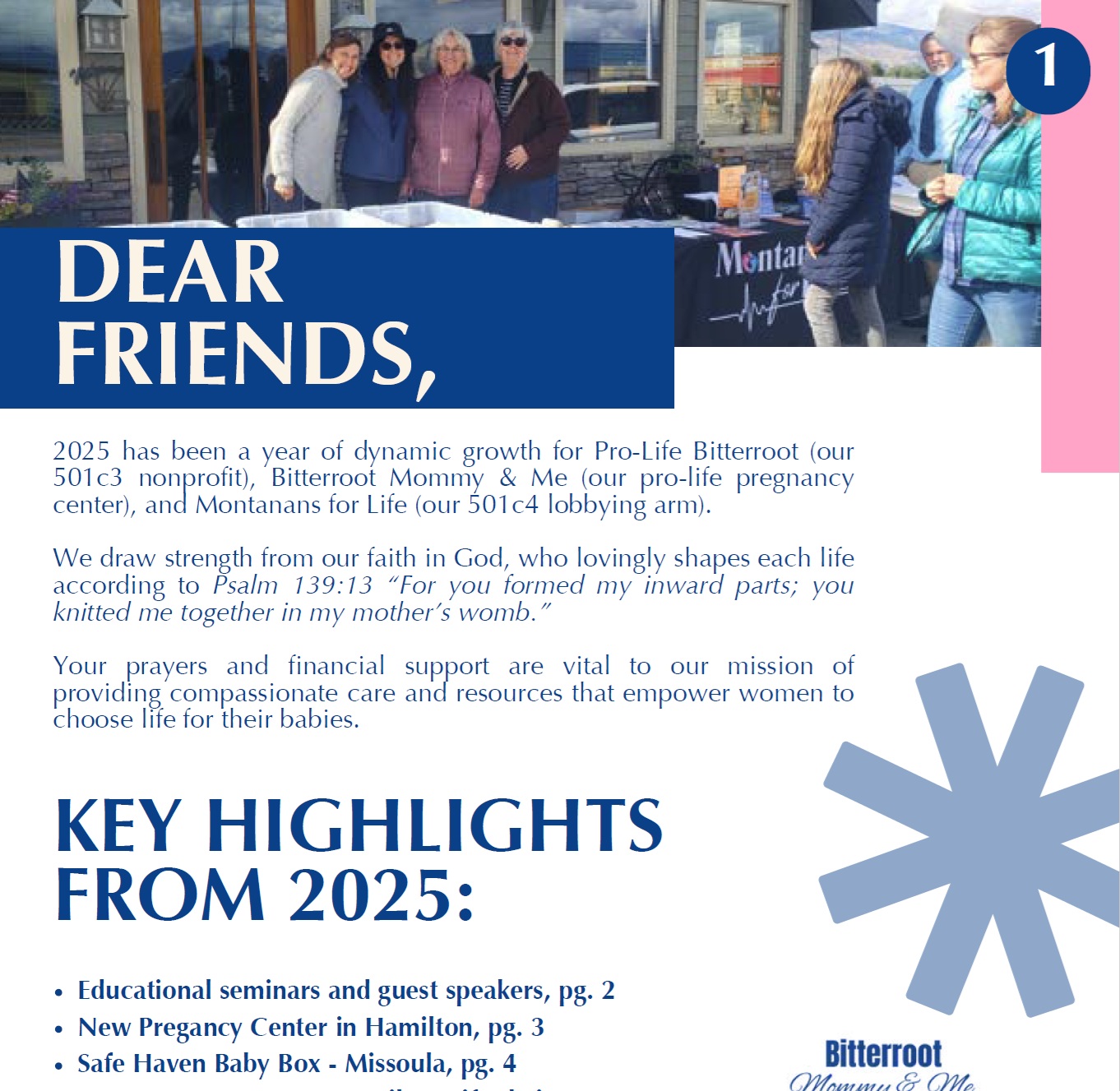 We are passionate about creating a culture of life by equipping, engaging, and working with other pro-life activists in Montana.